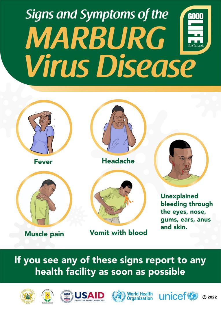 Symptoms of Marburg Virus Marburg virus causes symptoms that come on suddenly and become increasingly severe. Like Ebola, Marburg virus disease can cause severe hemorrhaging that leads to shock, organ failure, or death. Symptoms of a Marburg virus infection can include:4 Fever Malaise Body aches and headache Gastrointestinal distress, including watery diarrhea, nausea, and cramping, often around three days after symptoms appear Lethargy Non-itchy rash on the stomach, chest, and back that is flat and red with small bumps, similar to the rash caused by scarlet fever Neurological changes like confusion, seizures, and delirium Severe bleeding, typically five to seven days after symptoms start Organ failure Blood abnormalities including low white blood count or low platelets Abnormalities in kidney, liver, and clotting function In many cases, symptoms appear about a week (five to 10 days) after someone is infected with the virus, but they can come on anywhere from two days to three weeks.5